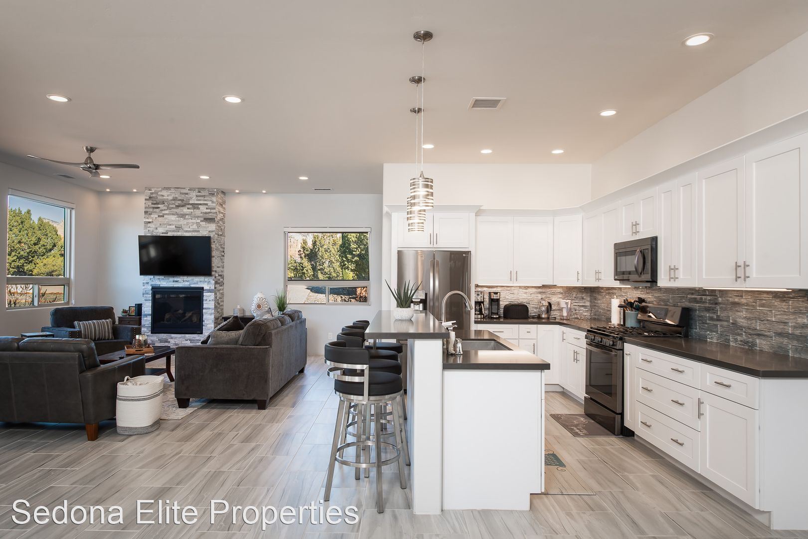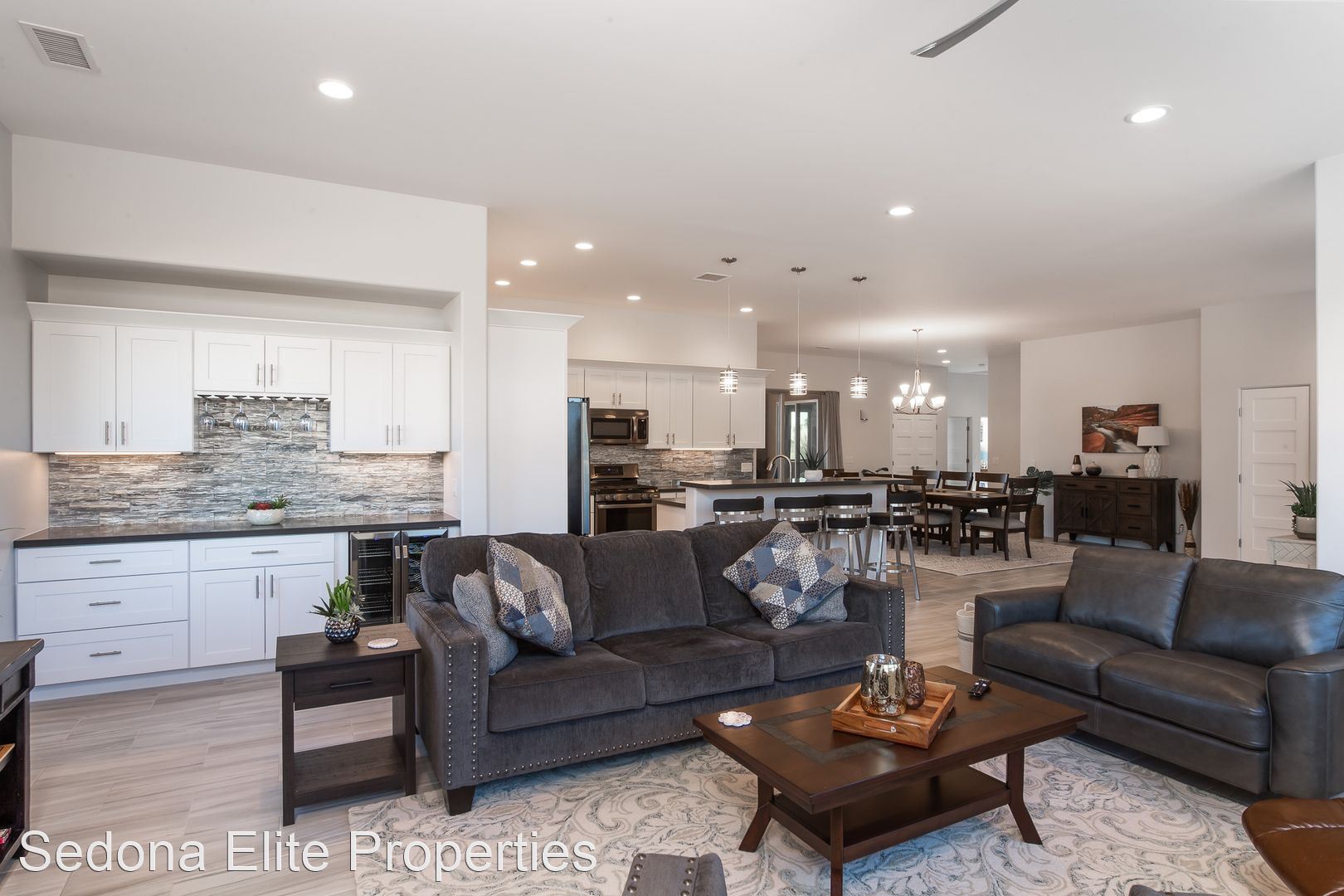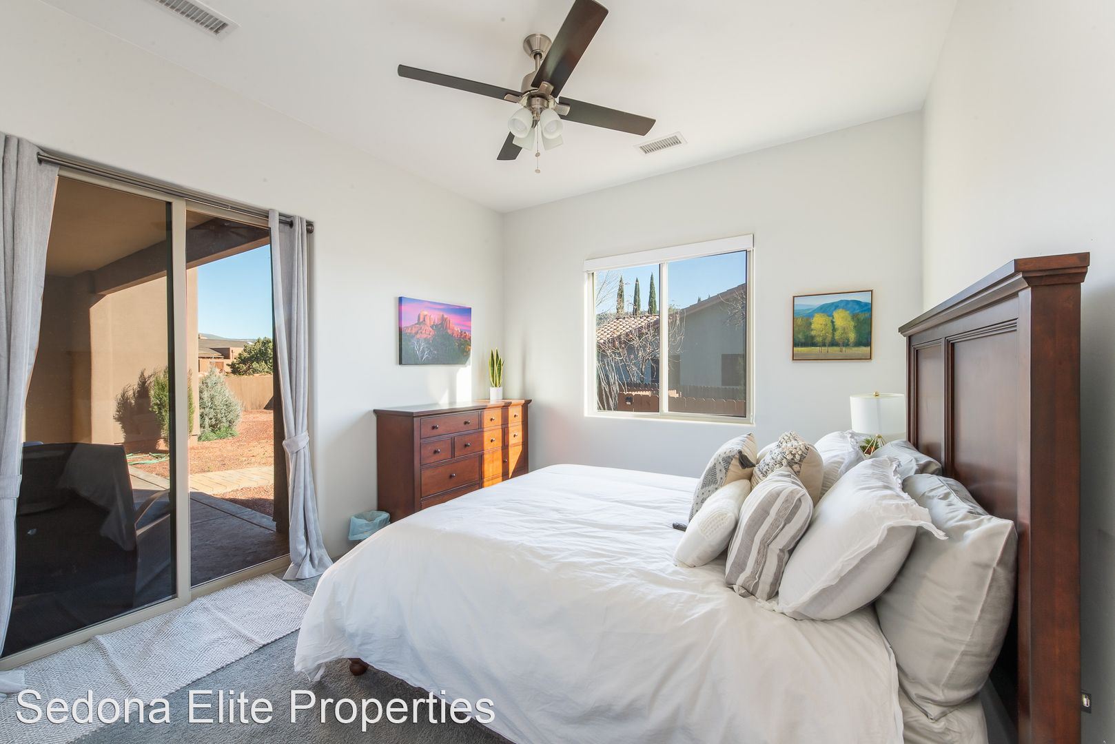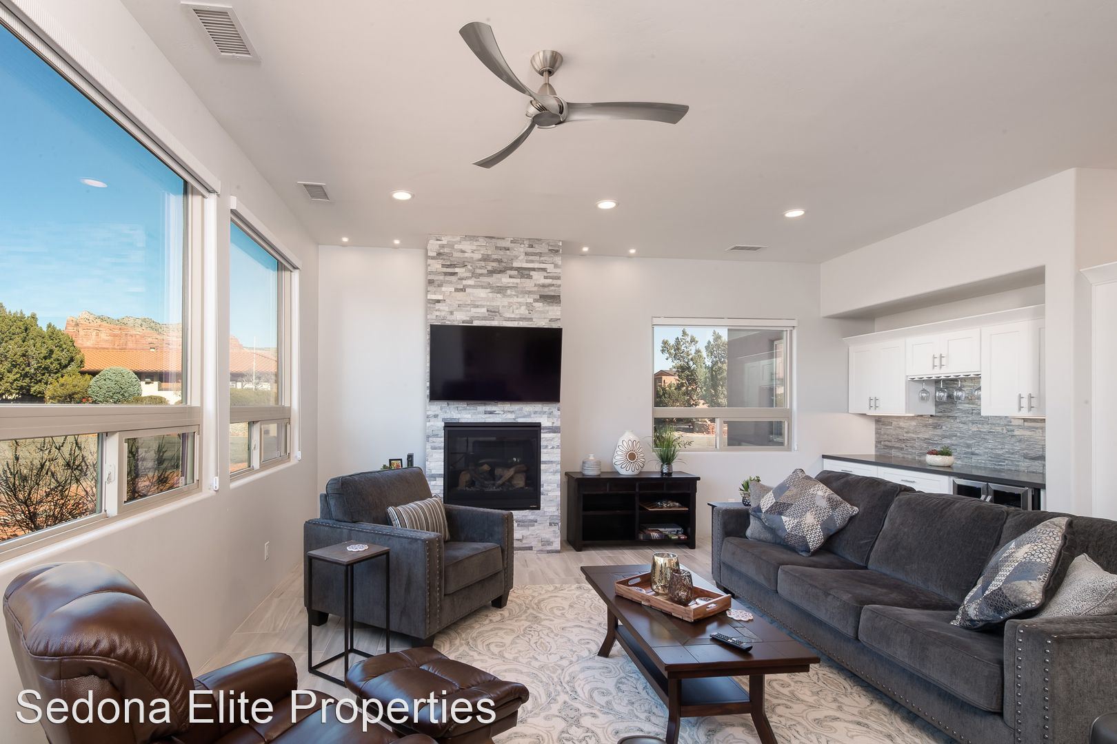 Furnished, 1 Month Minimum - This beautiful 3 bedroom, 2 bathroom split floor plan contemporary home was completed in 2019. Located in The Village of Oak Creek, the home offers spectacular views from both of the front and rear sitting areas and is located near shopping, hiking and golf. Upon entry, notice the incredibly detailed, yet refined design cues. The open kitchen offers white shaker cabinet with extensive quartz counter tops and a large island with plenty of seating; perfect for a quiet evening for two or a larger get together. The spacious master suite has unobstructed red rock views, an enormous walk in closet, and a private exit to the rear patio. The en suite master bath has to be seen with an oversized soak tub, large walk-shower shower, dual vanities, and an impressive stone accent wall. Master bath has walk-in shower, dual vanities, free standing soaking tub and a large stone accent wall. Bedrooms on the opposite side of the home offer privacy for guests as well as a large bathroom. Laundry room includes state of the art machines and plenty of storage. Large rear covered patio is perfect for watching the sun go up (or down), dining, or gathering with friends. Smart T.V. only. No Cable or Satellite. 2024 rental rate is $5,000/mo Absolutely no smoking on the property ** No Pets LEASING FEES: Monthly Rent: $4,800 Refundable Security Deposit: $1,000 Non-Refundable Cleaning Deposit: $550 AMENITIES INCLUDED IN LEASE: • Weekly Trash Pickup • Landscaping UTILITIES: •Landlord is responsible for all utilities "within reason". Utilities include: electricity, natural gas, water, internet/cable, and trash. APPROVAL REQUIREMENTS: Qualified applicants must: • Supply current verifiable income • Complete an application if over the age of 18 • Qualify on their own - co-signers will not be considered NOTES/DISCLAIMERS: • Property is furnished • 30 day minimum lease agreement as per the HOA. • Property is located within a HOA - please review CC&Rs before applying and be mindful of parking restrictions for both tenant and guest; over-sized vehicle/diesel truck restrictions; no commercial vehicles to be parked at the home; all vehicles must be stored in the garage or behind the fence; home based business restrictions; etc. Any questions about HOA requirements or restrictions should be asked prior to completing an application Please contact the office directly about availability.
