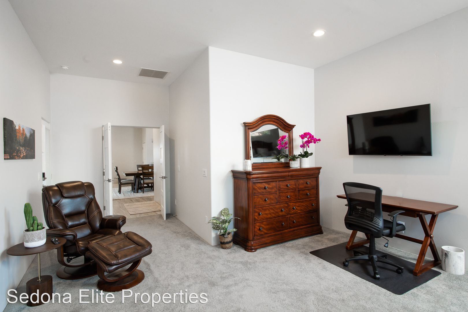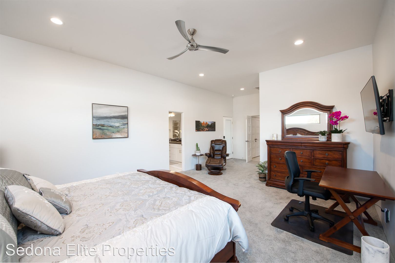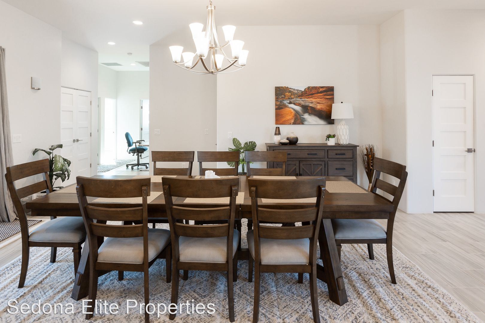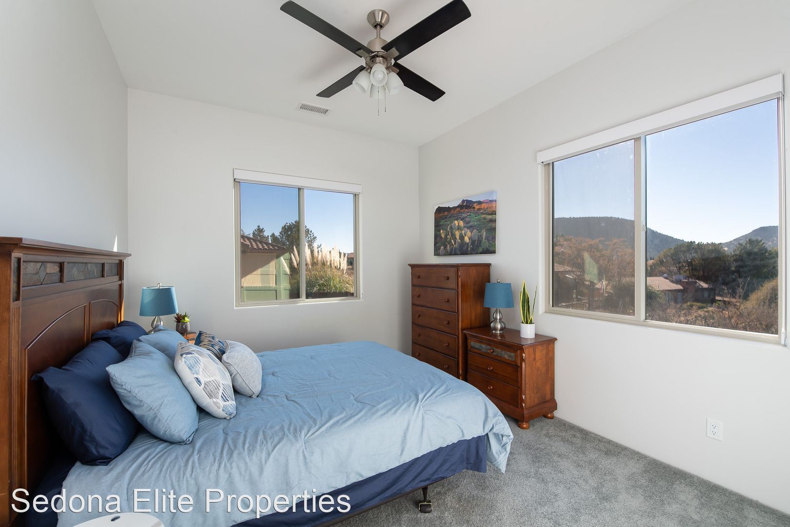 Furnished, 1 Month Minimum - This beautiful 3 bedroom, 2 bathroom split floor plan contemporary home was completed in 2019. Located in The Village of Oak Creek, the home offers spectacular views from both of the front and rear sitting areas and is located near shopping, hiking and golf. Upon entry, notice the incredibly detailed, yet refined design cues. The open kitchen offers white shaker cabinet with extensive quartz counter tops and a large island with plenty of seating; perfect for a quiet evening for two or a larger get together. The spacious master suite has unobstructed red rock views, an enormous walk in closet, and a private exit to the rear patio. The en suite master bath has to be seen with an oversized soak tub, large walk-shower shower, dual vanities, and an impressive stone accent wall. Master bath has walk-in shower, dual vanities, free standing soaking tub and a large stone accent wall. Bedrooms on the opposite side of the home offer privacy for guests as well as a large bathroom. Laundry room includes state of the art machines and plenty of storage. Large rear covered patio is perfect for watching the sun go up (or down), dining, or gathering with friends. Smart T.V. only. No Cable or Satellite. 2024 rental rate is $5,000/mo Absolutely no smoking on the property ** No Pets LEASING FEES: Monthly Rent: $4,800 Refundable Security Deposit: $1,000 Non-Refundable Cleaning Deposit: $550 AMENITIES INCLUDED IN LEASE: • Weekly Trash Pickup • Landscaping UTILITIES: •Landlord is responsible for all utilities "within reason". Utilities include: electricity, natural gas, water, internet/cable, and trash. APPROVAL REQUIREMENTS: Qualified applicants must: • Supply current verifiable income • Complete an application if over the age of 18 • Qualify on their own - co-signers will not be considered NOTES/DISCLAIMERS: • Property is furnished • 30 day minimum lease agreement as per the HOA. • Property is located within a HOA - please review CC&Rs before applying and be mindful of parking restrictions for both tenant and guest; over-sized vehicle/diesel truck restrictions; no commercial vehicles to be parked at the home; all vehicles must be stored in the garage or behind the fence; home based business restrictions; etc. Any questions about HOA requirements or restrictions should be asked prior to completing an application Please contact the office directly about availability.